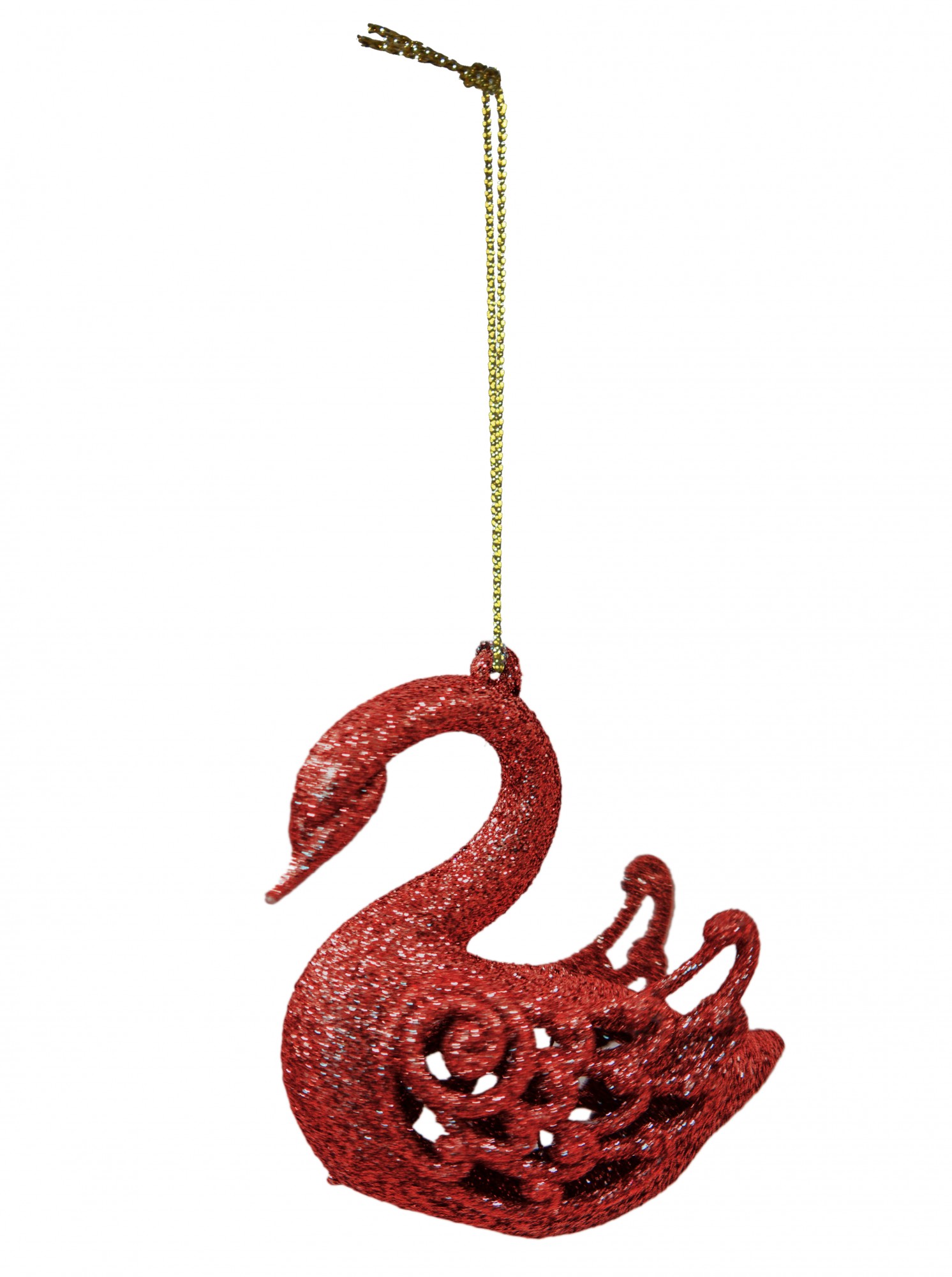 Piękna, brokatowa zawieszka w kształcie łabędzia w kolorze czerwonym. Idealna do dekorowania domu na święta.