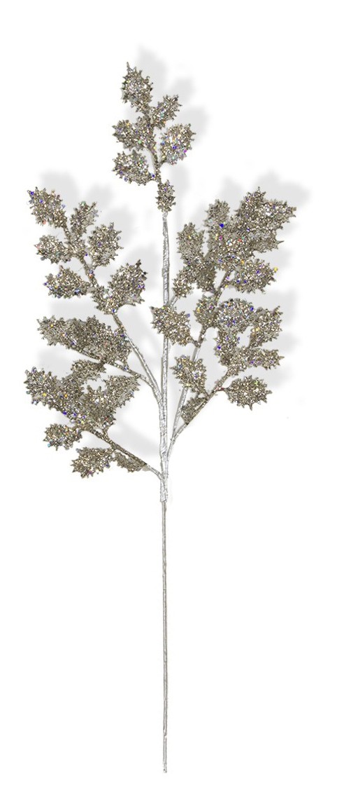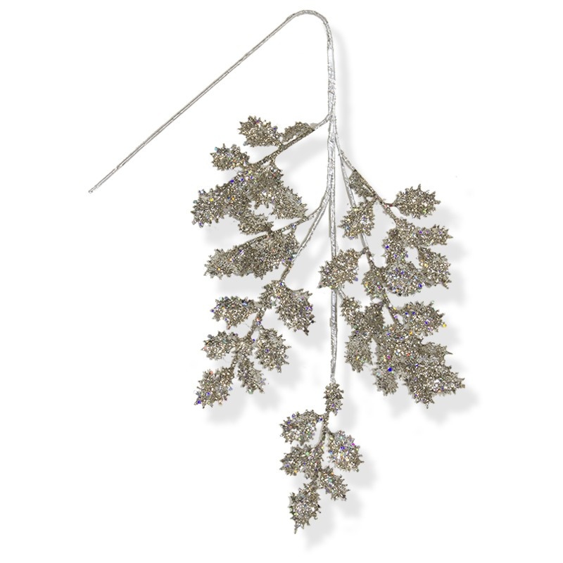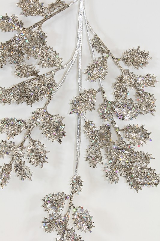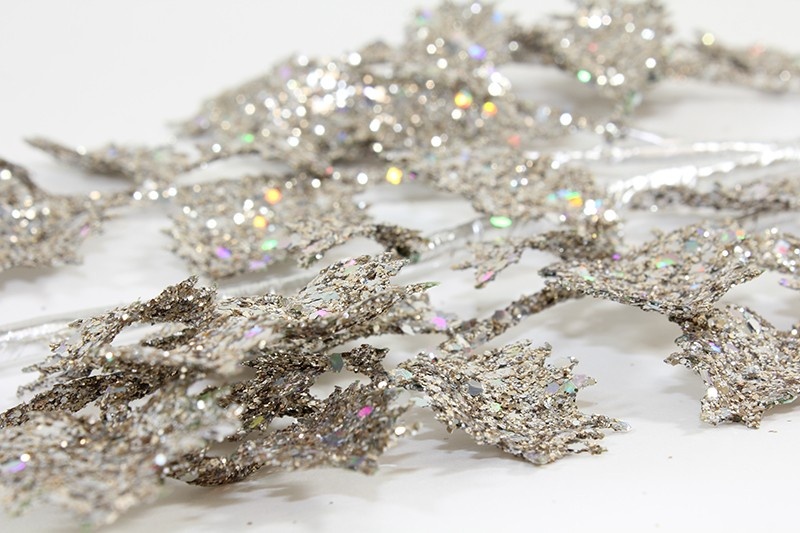 Gałązka obsypana srebrnym brokatem  to piękny dodatek do wieńców, stroików, bukietów, kompozycji flowerbox czy innych aranżacji bożonarodzeniowych. Idealne również do dekoracji choinki.