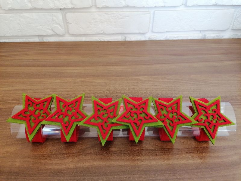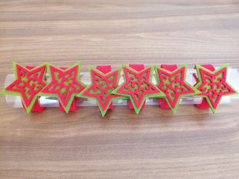Zestaw 6 filcowych obrączek do serwetek. Ozdobione motywem świątecznej gwiazdki.