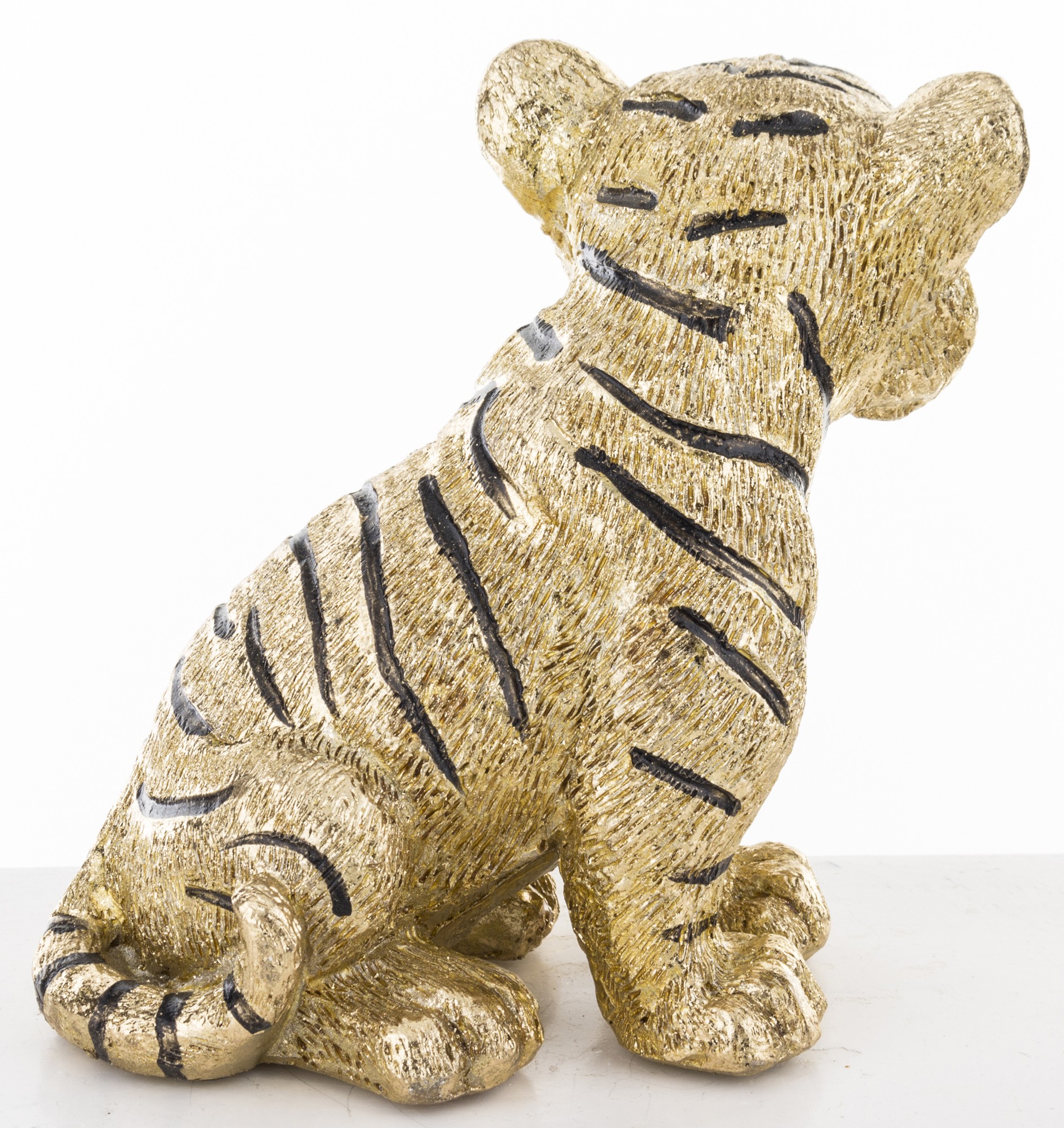 Starannie wykonana figurka przedstawiająca małego tygrysa. Urocza ozdoba z wieloma detalami, która znajdzie miejsce w domu, biurze czy gabinecie. Figurka ta wprowadzi egzotyczny klimat do Twojego wnętrza.