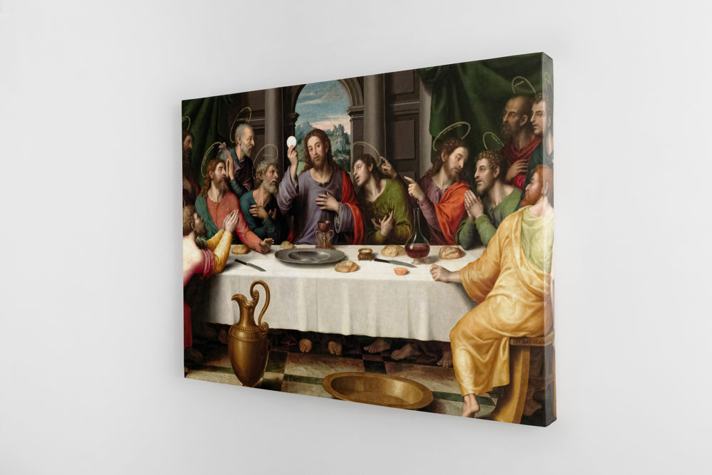 Obraz religijny na płótnie typu canvas przedstawiający scenę Ostatniej Wieczerzy. Obraz religijny na płótnie z Ostatnią Wieczerzą może stanowić doskonały prezent, z pewnością wniesie do pomieszczenia ciepło i kolor a także może być pomocą w codziennej modlitwie.