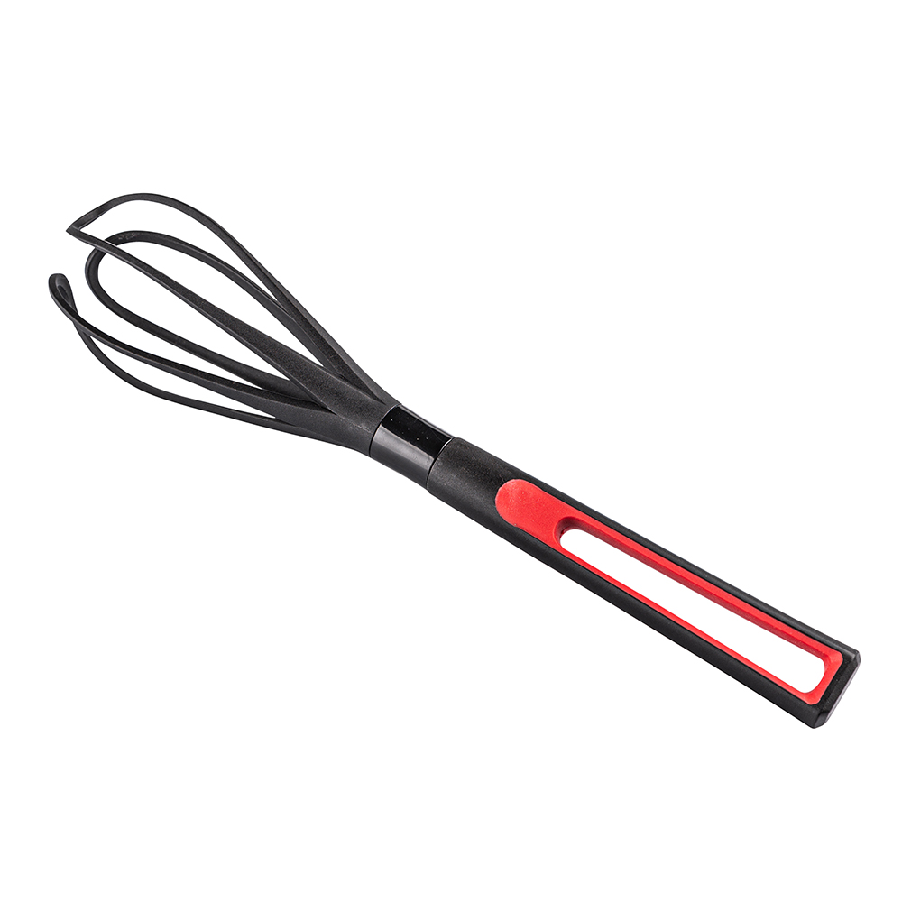 Nylonowa trzepaczka jest idealna do używania na delikatnych powłokach nieprzywieralnych garnków. Wygodna rączka zapewnia pewny chwyt łyżki, a znajdujący się w niej otwór umożliwia jest powieszenie wśród innych kuchennych akcesoriów.