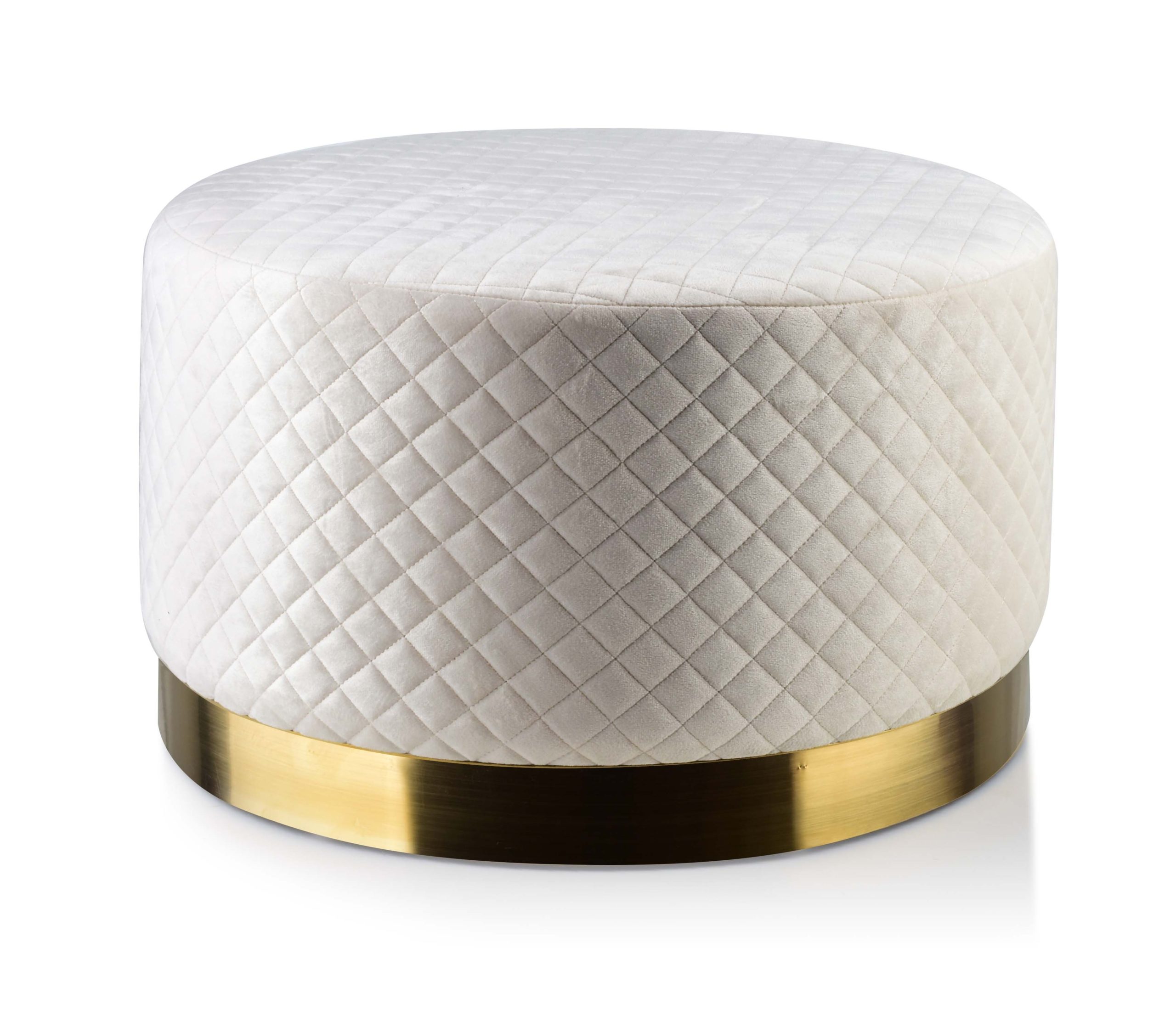 Przepiękny pikowany puf z serii LILY. Kolor jasno-beżowy ze złotym spodem prezentuje się idealnie.